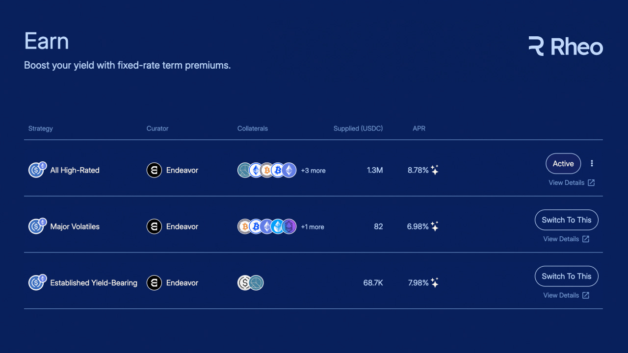 And, for readers who made it this far, Rheo mainnet Earn vaults are now paying a fixed 5% USDC bonus on top of competitive yields. Deposit today to start earning 8.78% APY on your stables instantly.